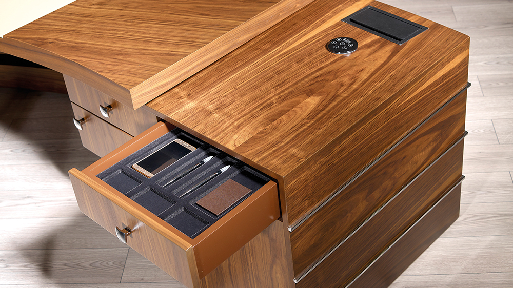 Campus Vip Makam Takımı ustaca hazırlanmış dairesel tasarım, mükemmel el işçiliği ve amerikan ceviz kaplamanın elegan ifadesi ile göz dolduruyor. Özel organizerli çekmecesi, gizli kasası, led ışıklandırma çöp kutusu ile klasik lüksü yaşarken size özel data, ses sistemi, ve gizli bölmeler ile ayrıcalığı yakalayabilirsiniz.