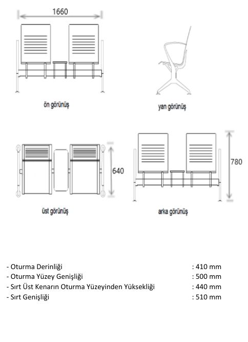 | 530 | İkili Kollu Tam Döşemeli | Bekleme Koltuğu | 0,16 m³ | |